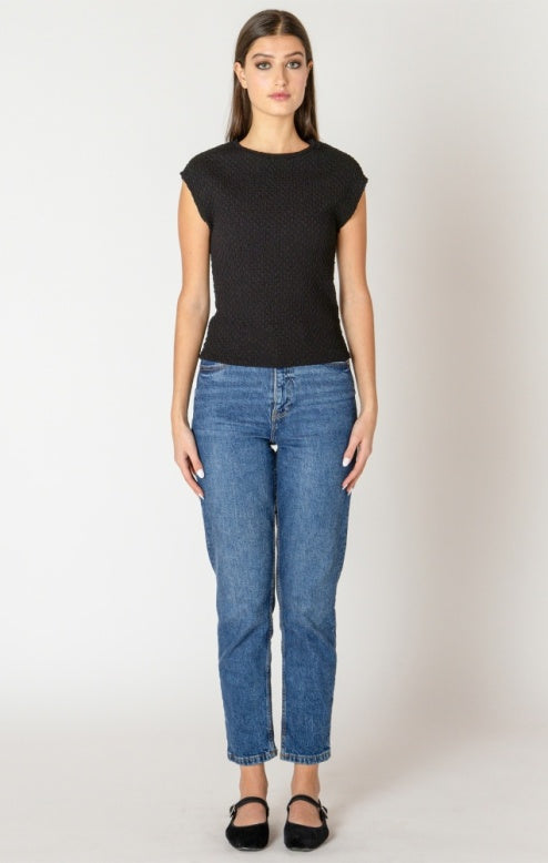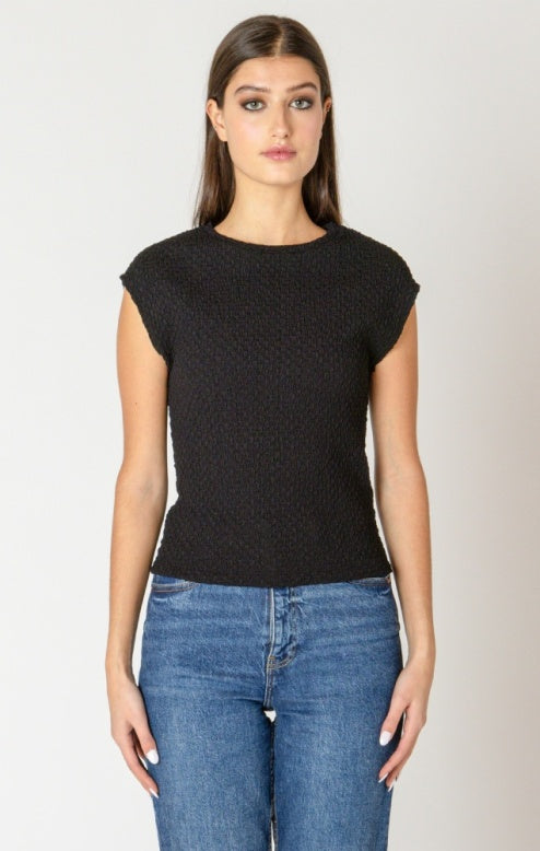 Classic black textured top by Black Tape, Dex. Pair it with the textured flowy wide leg pants for a full outfit!