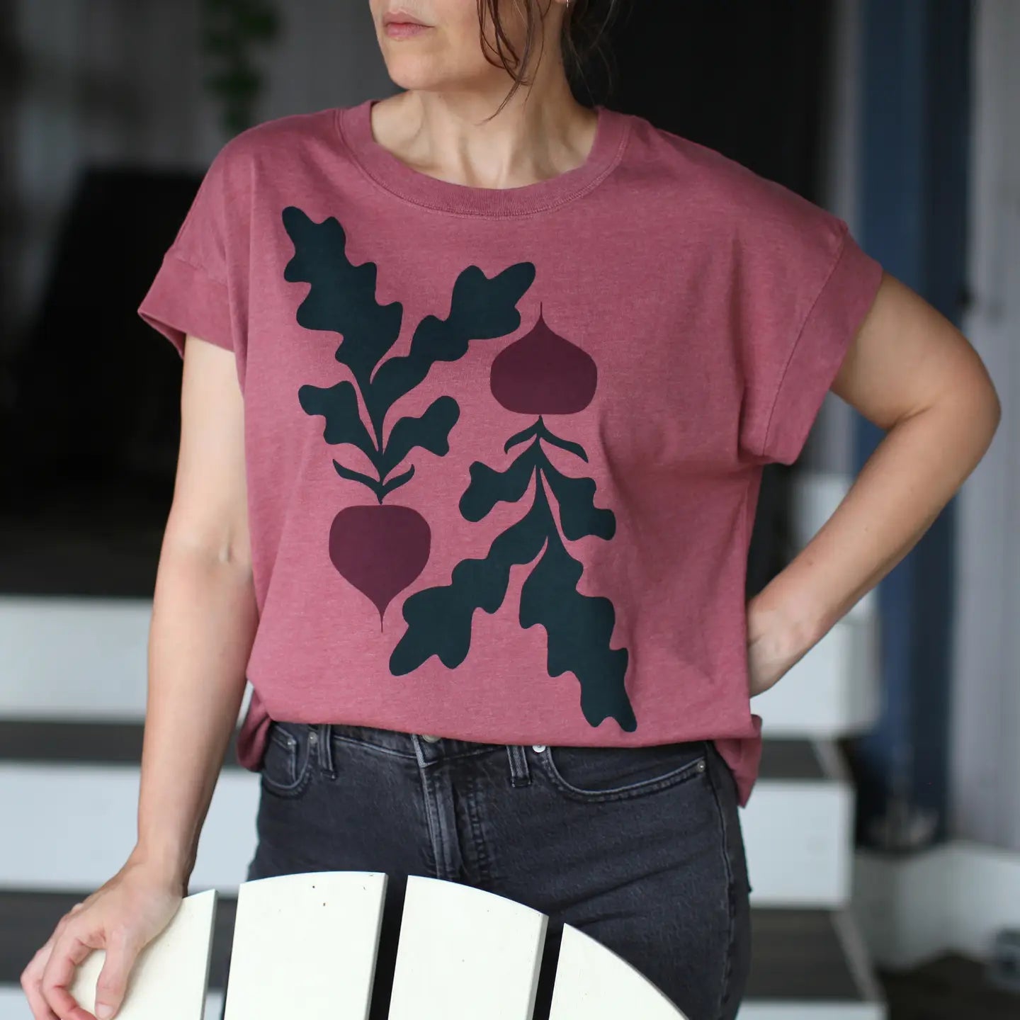 A truly accommodating style for a variety of body types, this roomy top has a similar fit to our popular rolled cuff tees. However, because it has a true boxy cut, it does run a bit larger. So we generally recommend sizing down.