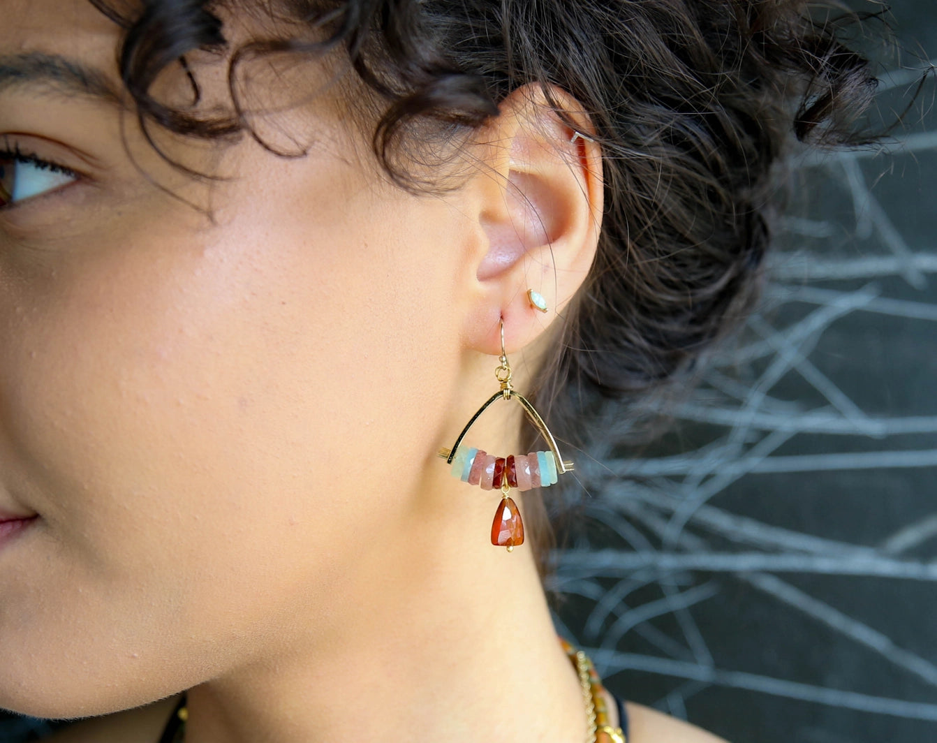 Catherine's Page spring line was inspired and named by dances around the world. Stacks of faceted gemstones create a harmonious balance of soft hues, accented by a single drop that adds a touch of glowing brilliance. These earrings are truly a celebration of individuality, and for those who value thoughtful details and enjoy feeling put together for any outing, from lunch, to the nail salon, to carline and everything in between.