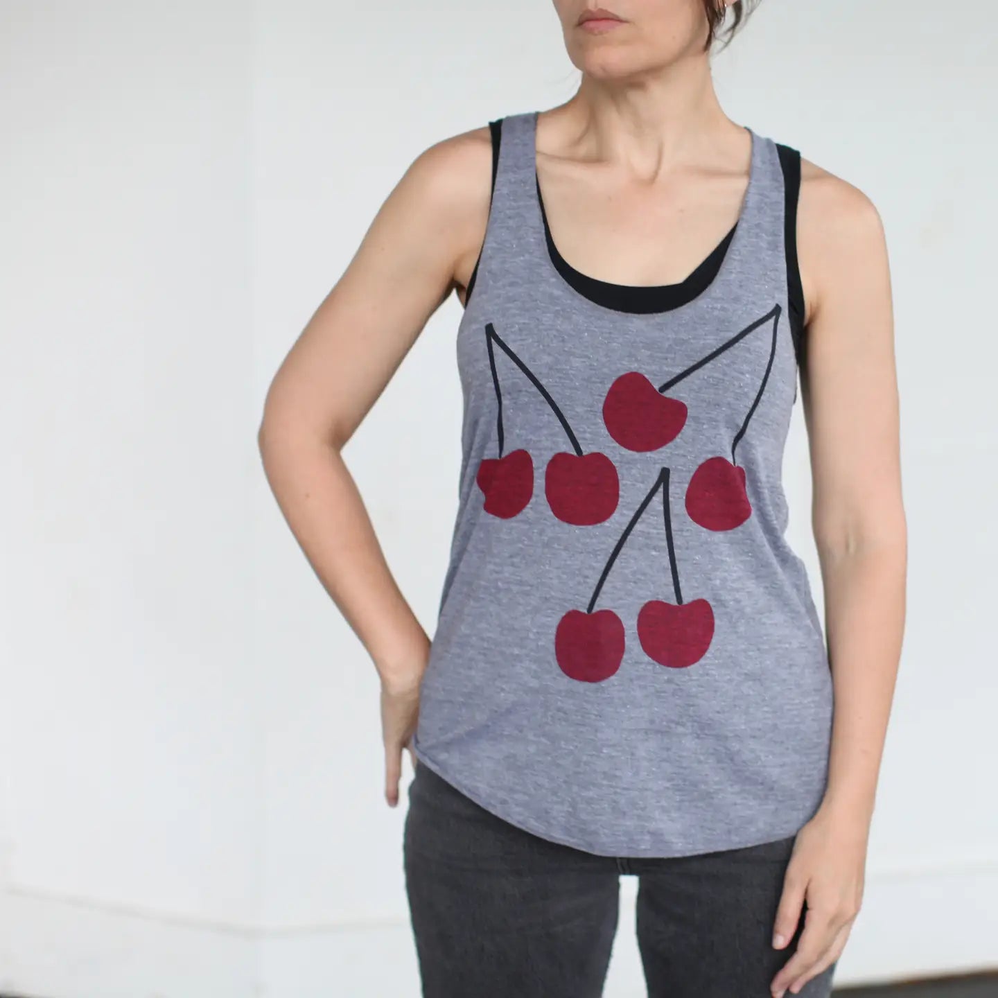 Cherry Bomb Bing Cherries Women's Racerback Tank Top Gray