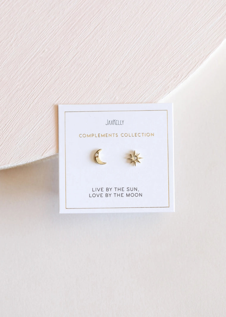 These sun-moon mismatched earrings can be worn together or separately, designed to complement each other.