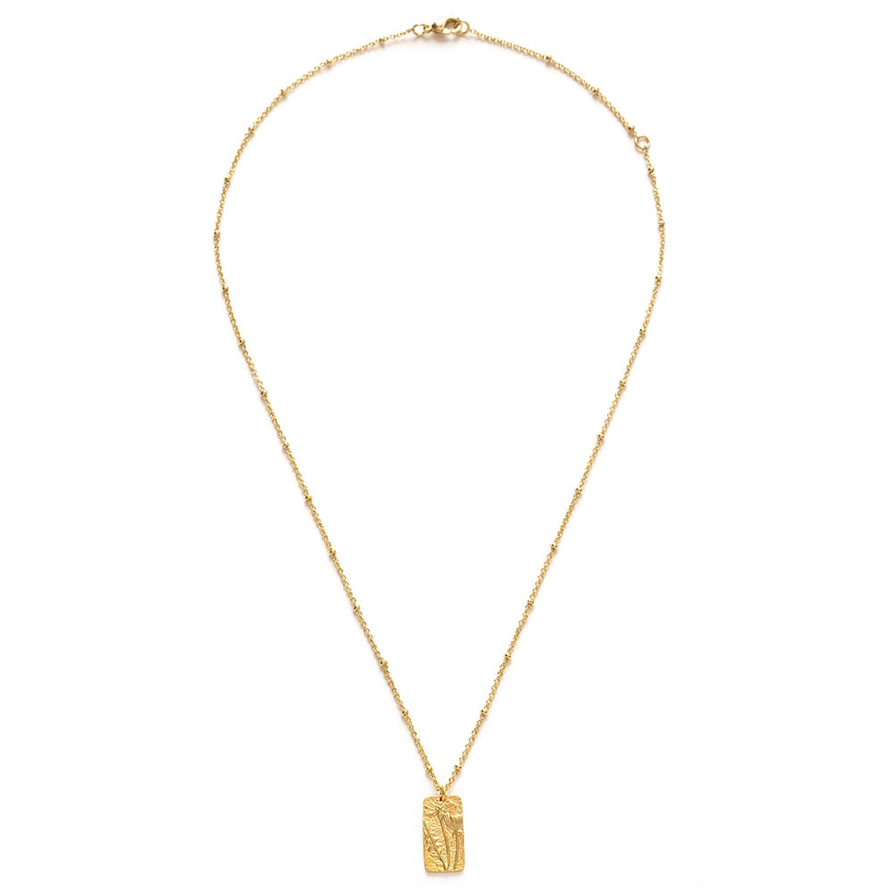 This beautiful flower medallion layers beautifully or is a sweet, simple statement all its own. The .75" medallion hangs from an 18" beaded chain that is made of 14k gold plated brass that is also coated to resist tarnish and create a hypoallergenic surface. Designed and assembled in Sonoma, California.