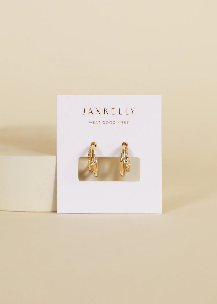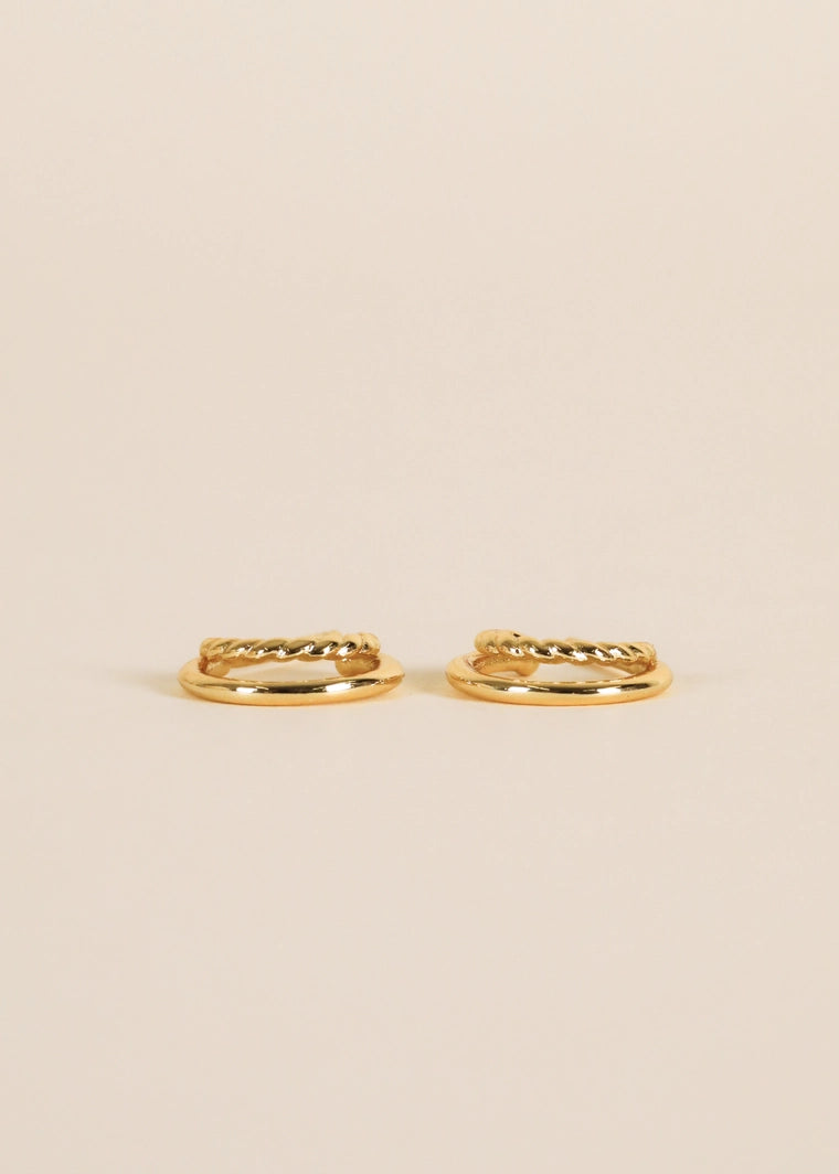 Your everyday hoop with a twist! Our two-in-one double offset hoop earring has a smooth, larger hoop nestled next to a mini twisted hoop.