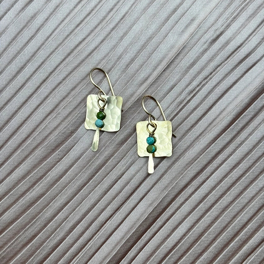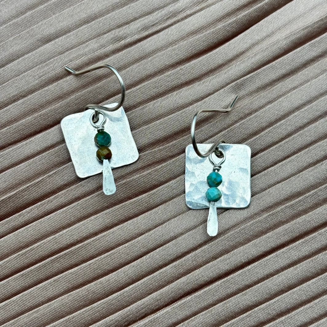 Gold or silver square pendants with turquoise stones. Handmade in the USA.