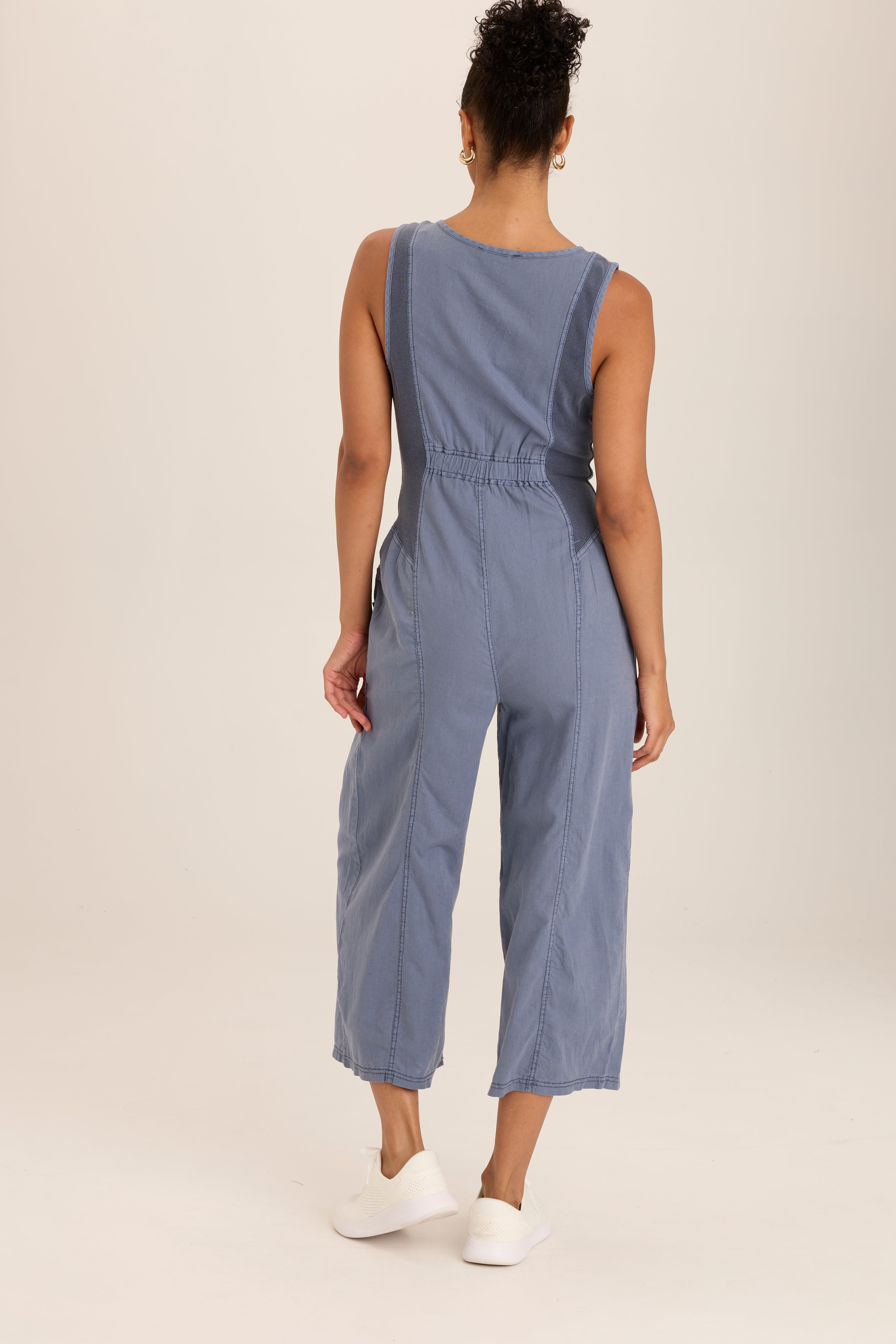 This cotton linen head-turner features contrasting inserts at the bodice for a fit you can count on, along with generous layered pockets at the hips, from which small, box pleats cascade and add soft volume to the leg. A v-neckline descends into an antique brass zipper that makes Macgowan easy to take on and off.