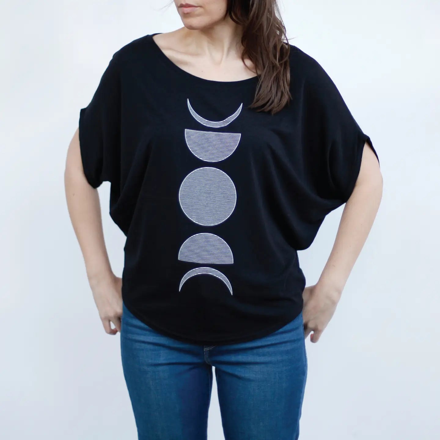 Moon Phase Women's Dolman Sleeve Bamboo Tee Made in USA