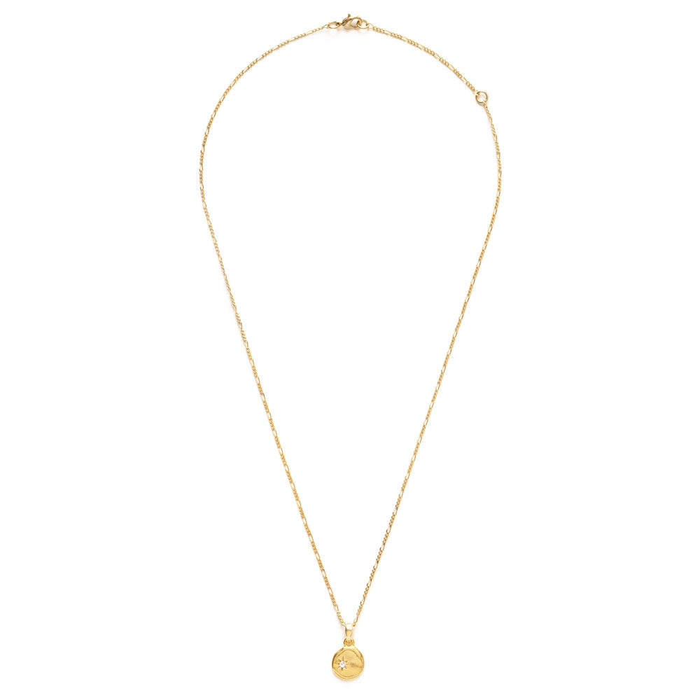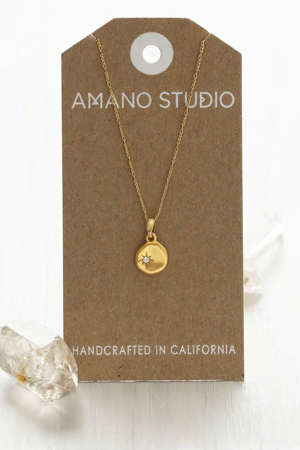 The North Star or Polaris can be your point of navigation in the night sky. This single star on the hand carved pendant is set with a Czech crystal. It is made of gold plated brass. The chain is 20" long with a ring at 18" so it can be adjusted to various lengths. The chain is also coated to resist tarnish and create a hypoallergenic surface.