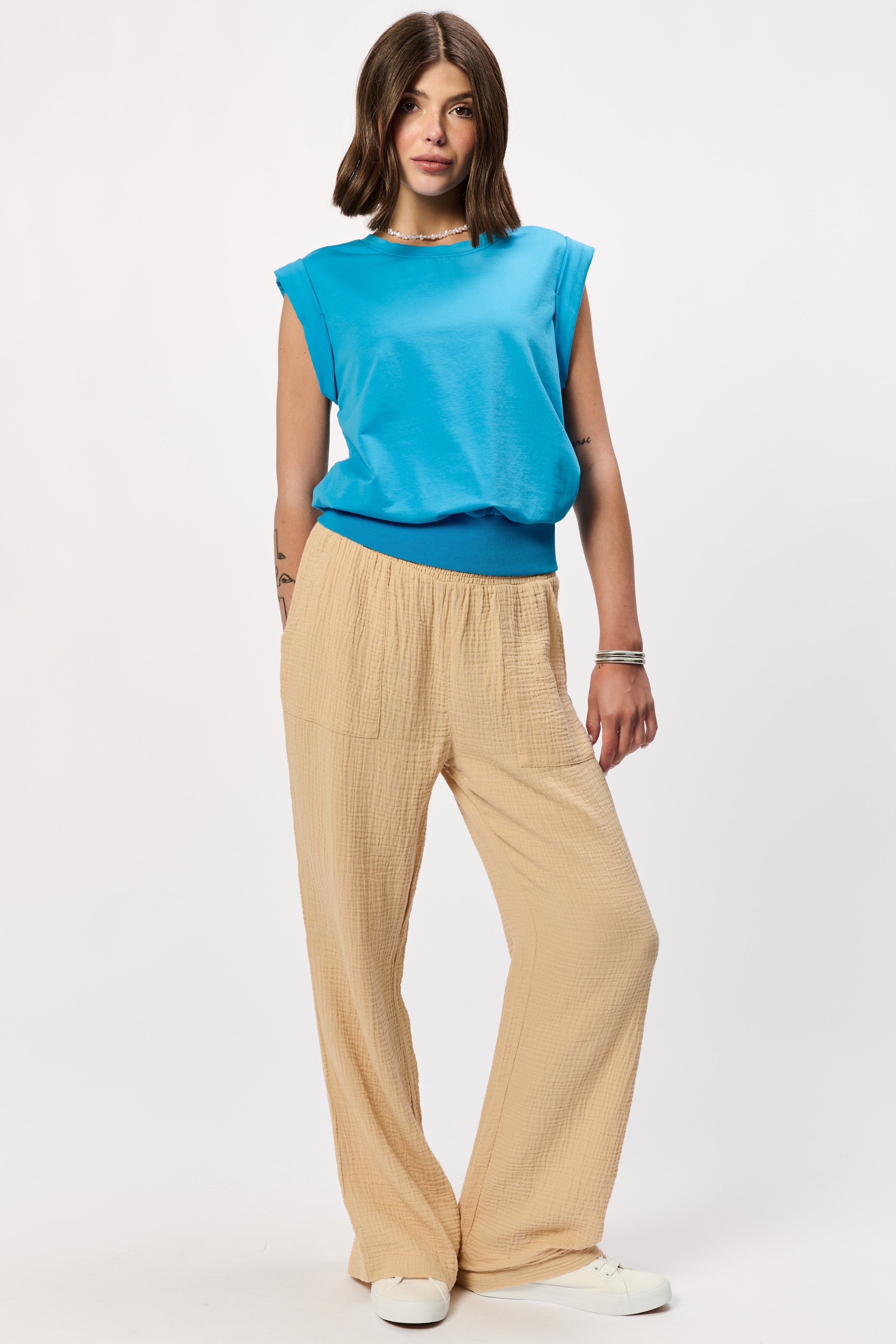Muscle sweatshirt with rib waistband