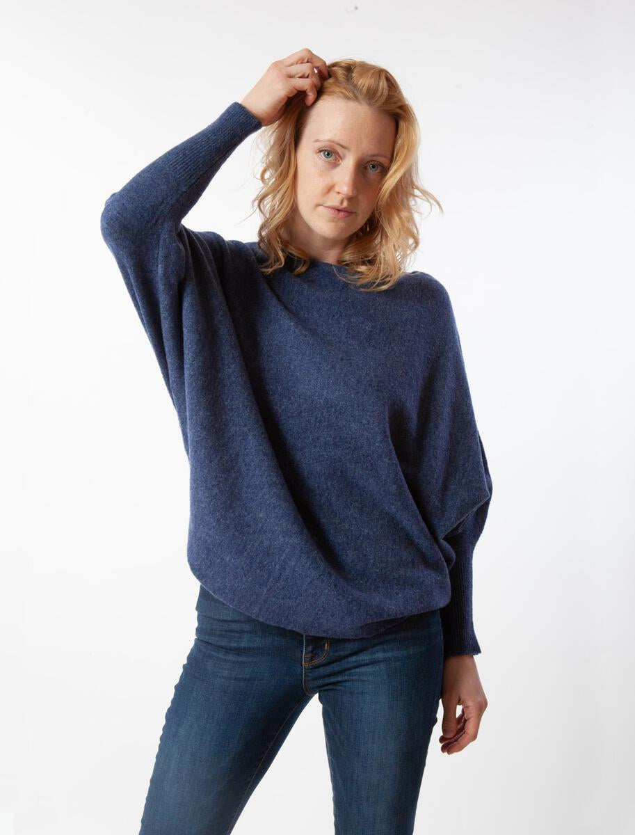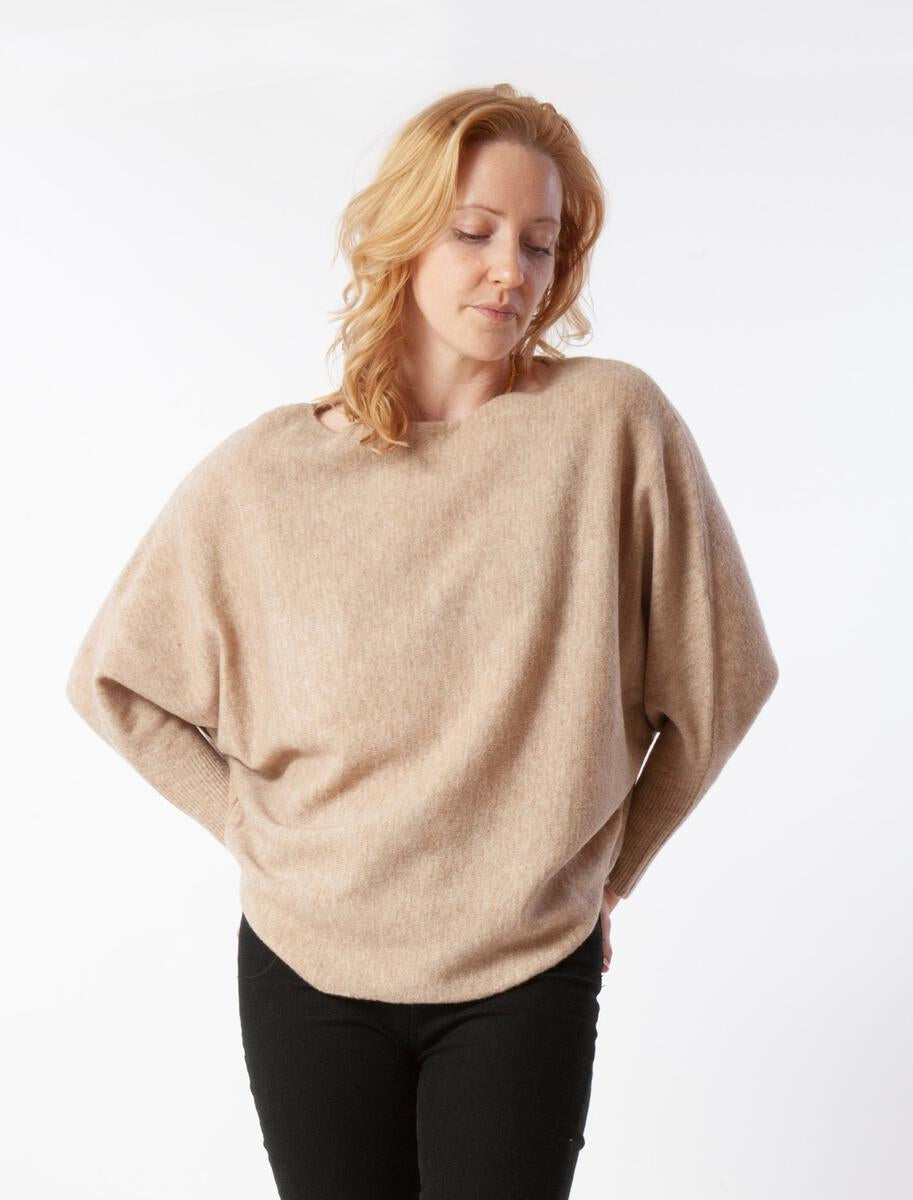 OVERSIZED BOAT NECK SWEATER W/ LONG BATWING