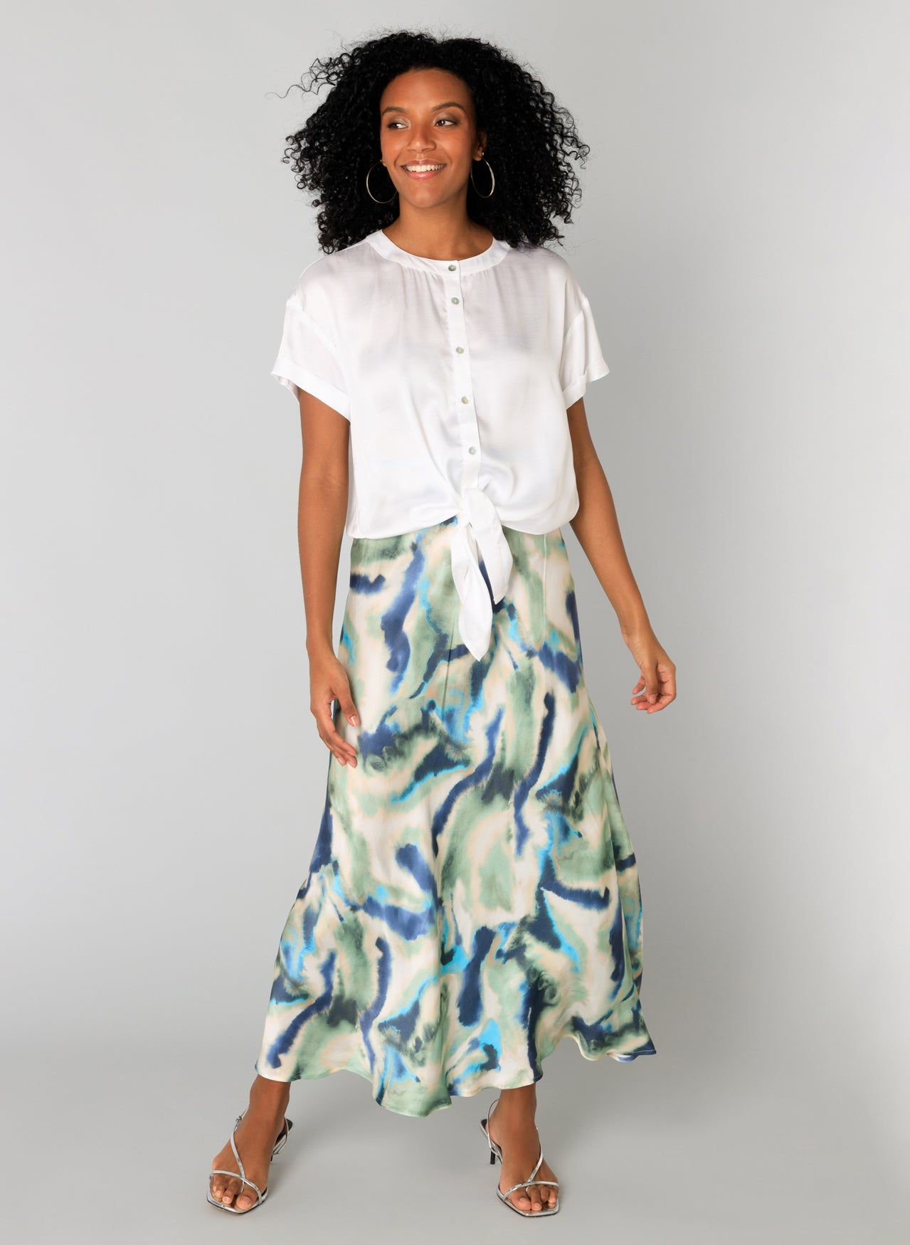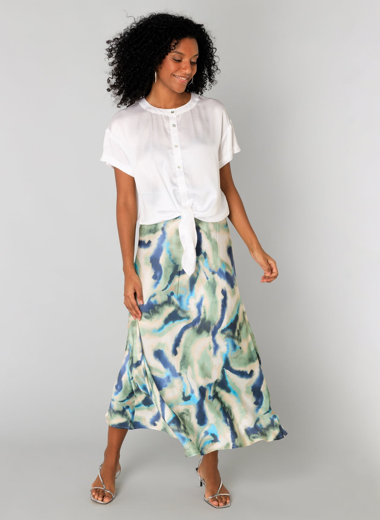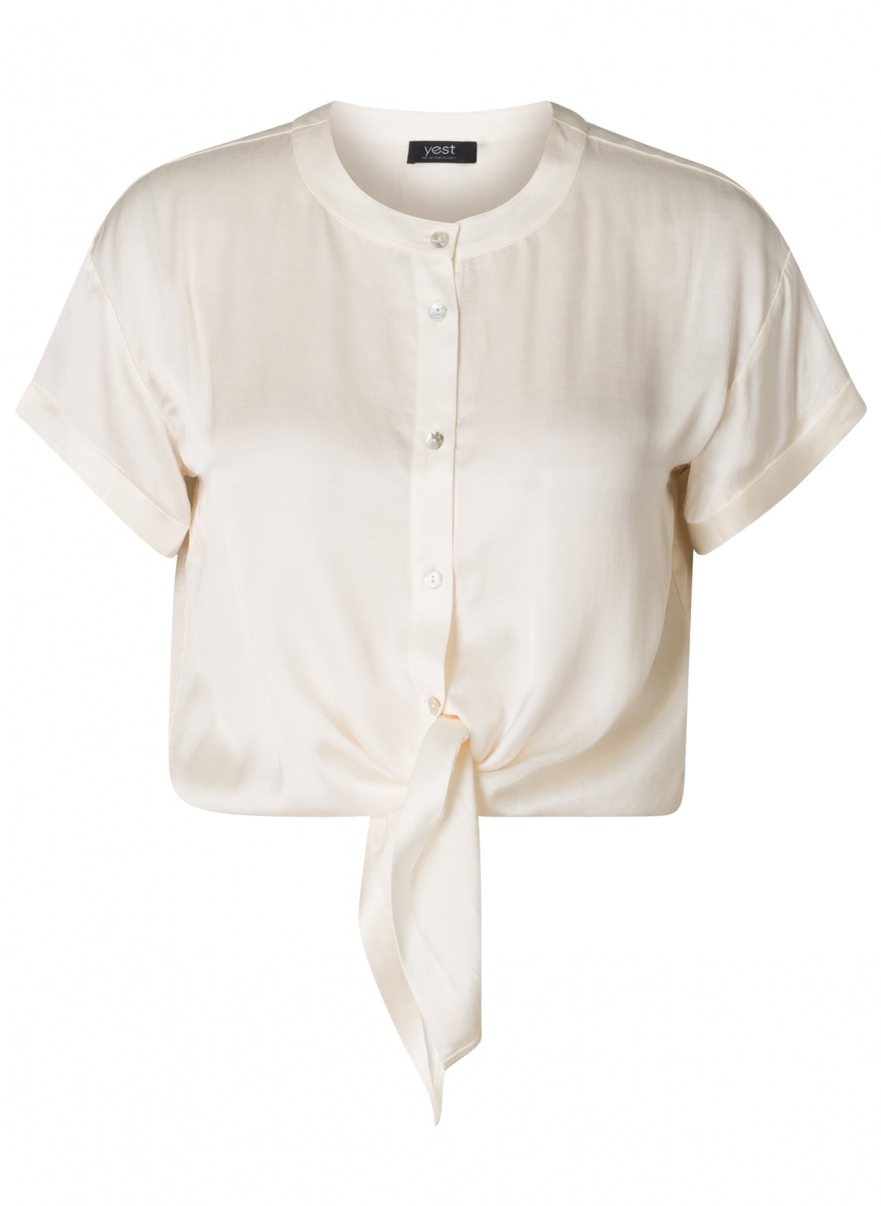 White, silky, tie front Sacha Top by Yest Fashion.