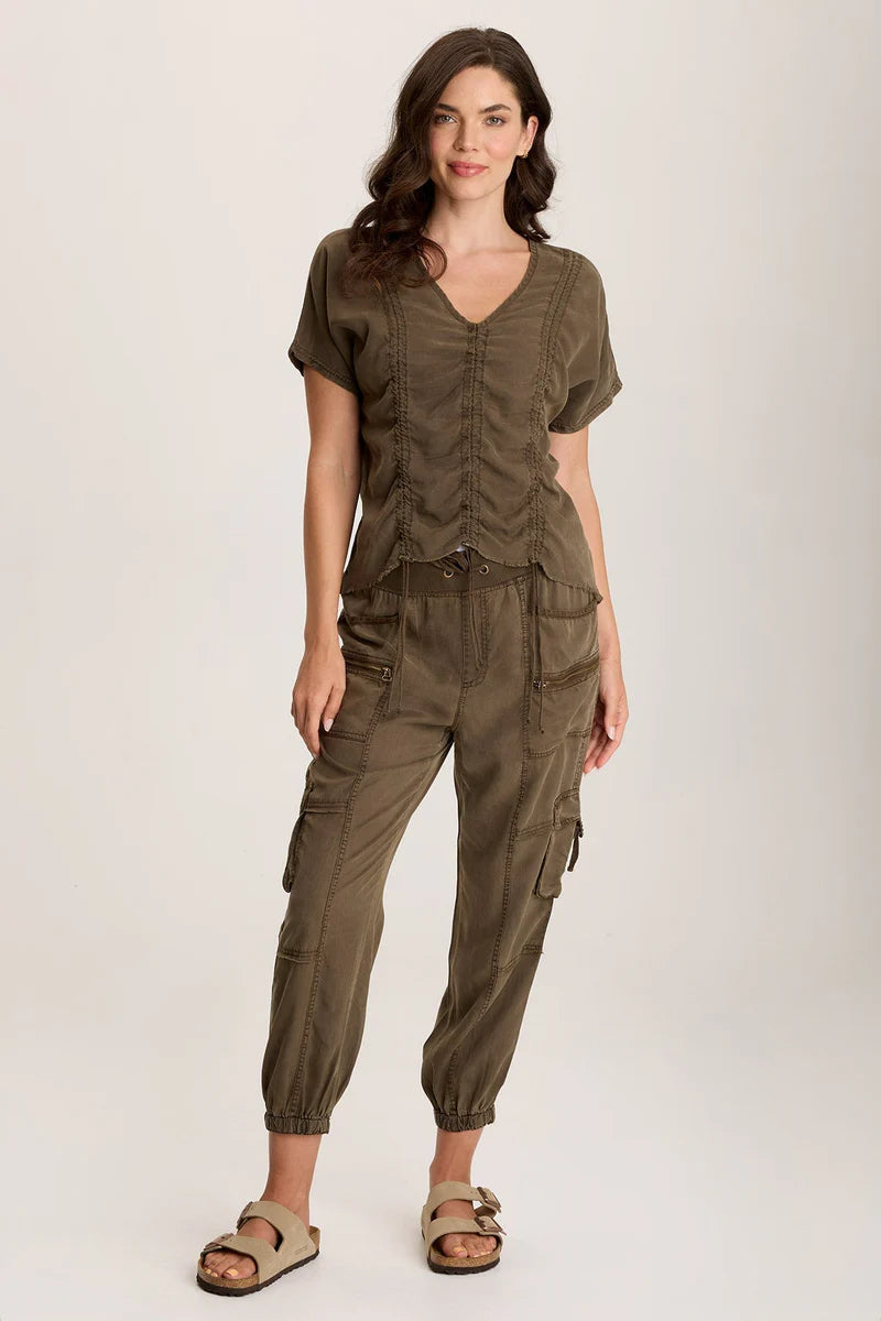Werner Twill Ruched Cord Relaxed V-Neck Tee